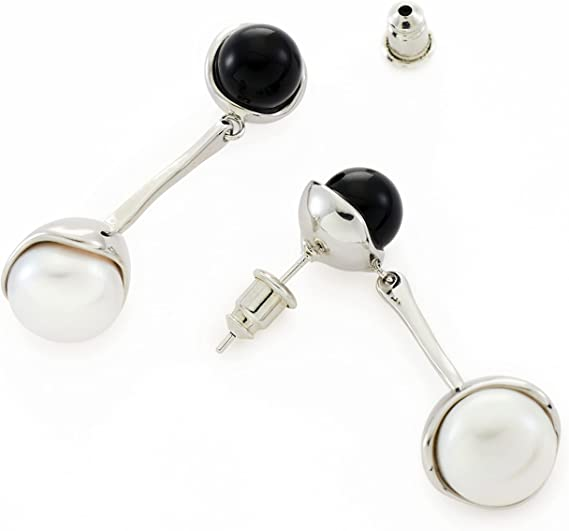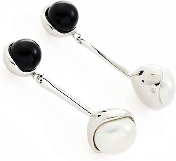GOLD-PLATED: This drop earring showcase perfectly rounded pearls and agate, which are joined together 18k white gold links for an elegant style.